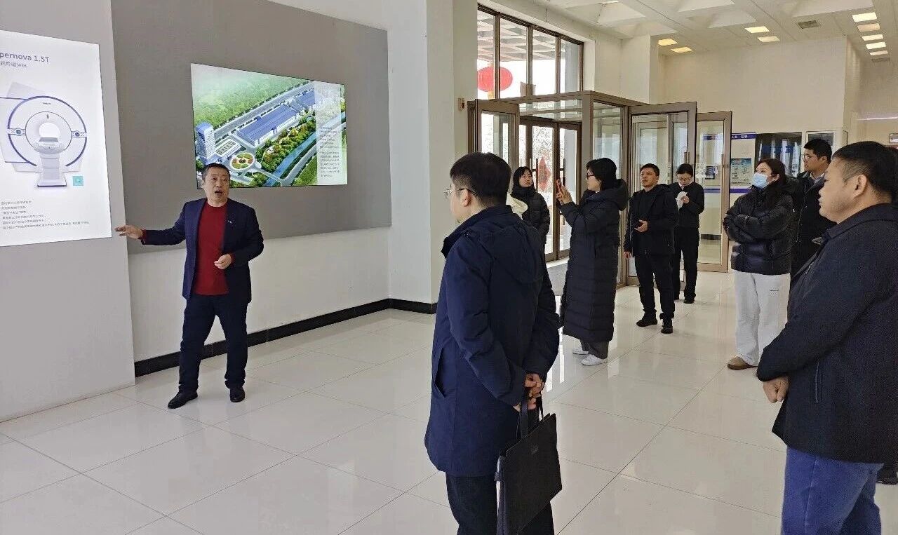 调研团一行先后走进公司展厅与生产厂区,了解宽腾的发展历程、技术创新、产品布局及生产运营情况。在沈总的陪同与讲解下,调研团详细了解了宽腾医疗的发展历程、核心技术优势以及在医学影像设备领域取得的突破性成果,并对公司坚持自主创新、深耕医疗装备领域的发展路径给予高度关注。